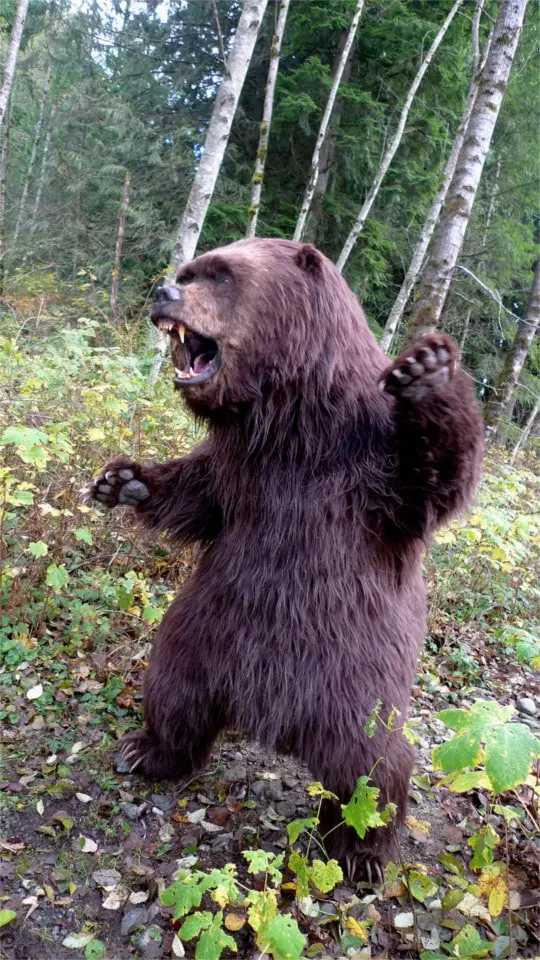 Kody, his kodiak bear brother is also ready to perform for you. This other bear is a one of a kind highly realistic photo double of a grizzly kodiak bear (the biggest of the bear kingdom). He is the only one available in the world. It is composed of a performer suit and an animatronic head able to growl, talk and more. It has doubled real bear in feature films and numerous commercials.